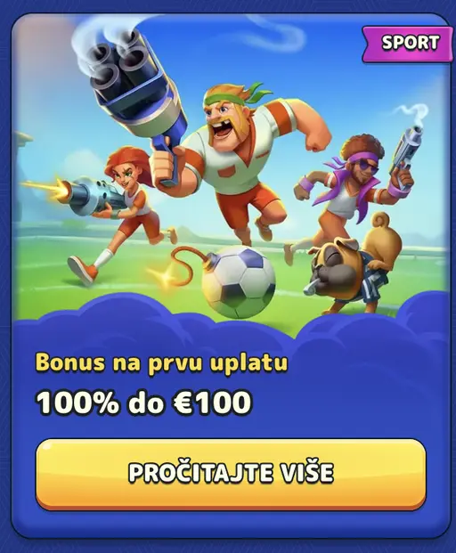 Sportski bonus na prvu uplatu omogućuje 100% bonus do maksimalnih 100 eura za nove igrače koji odaberu sportsko klađenje tijekom registracije. Bonus se može koristiti na sve dostupne sportove s minimalnim koeficijentom 1.80.