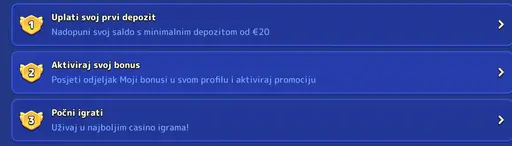 Novi igrači primaju bonus dobrodošlice od 100% na prvi depozit do maksimalnih 500 eura uz 200 besplatnih vrtnji. Bonus se aktivira automatski nakon prvog uspješnog depozita s minimalnim iznosom od 20 eura.